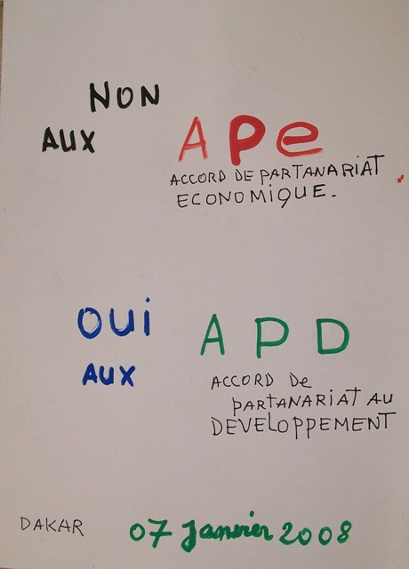 Le lundi 17 janvier à Dakar, il y avait une manifestation d’agriculteurs et artisans anti-APE et de soutien à la position du président WADE et des autres dirigeants africains.