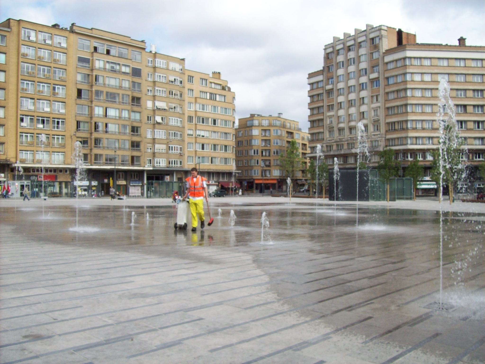 L’étendue stérile me rappelle la nouvelle place Flagey, sauf que cette place-là, elle vit à la croisée de multiples chemins. Les enfants pédalent et courent en tous sens, ils se douchent sous des jets de fontaine surgissant à même le pavé.