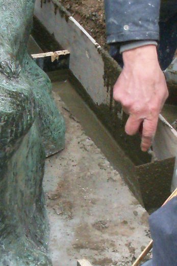 Deux hommes s’affairent autour du bronze, préparent une coulée et cimentent l’assise de l’édifice. Pour des raisons ignorées par votre serviteurs un déplacement de quelques crochets a animé le jeune Peter.