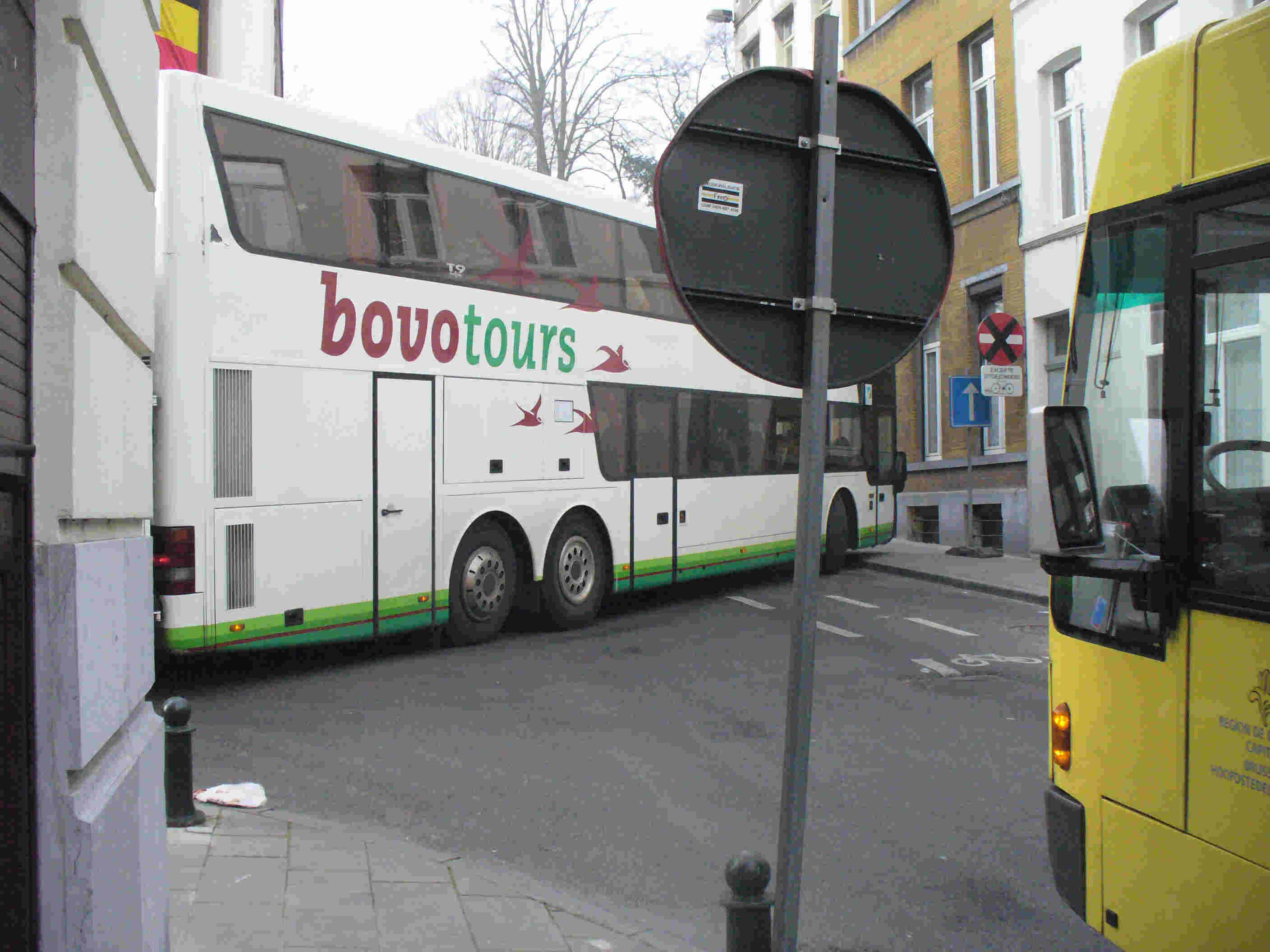 2. J’ai assisté hier vers 10h50 à un accrochage entre un semi-remorque et une voiture en stationnement, (Remarque : au carrefour avec la rue du Sceptre et de la rue Vandenbroeck le panneau indiquant le musée à été confondu avec un panneau de déviation par le conducteur du camion).