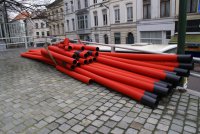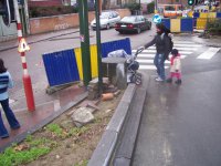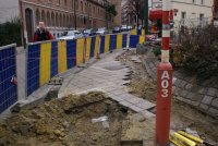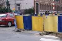 Thésée, pourvu du fil d’Ariane en matière de sécurité quotidienne des enfants et des riverains, a pris quelques photos. Mais il n’a pas pu suivre le fil des entreprises et des donneurs d’ordre, en l’absence de panneau précisant le nom et l’adresse de l’entreprise qui creuse des trous et entrepose des pavés, dalles et autres sur les arbustes et sur les espaces publics normalement réservés aux piétons. Il n’y avait pas non plus de panneau indiquant le nom et le téléphone du coordinateur de sécurité, mention pourtant obligatoire depuis une ordonnance bruxelloise de 2002 et une directive européenne de 1996…